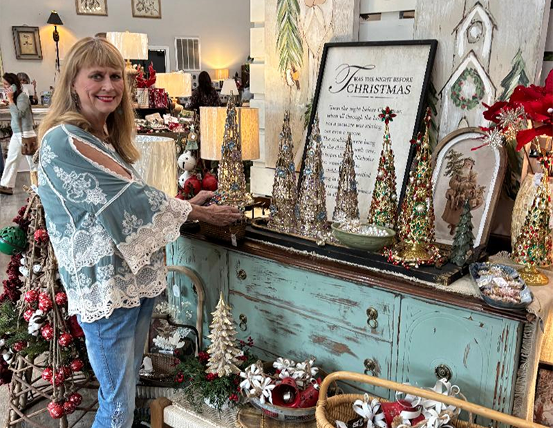 “I really enjoy the buying part, the selection of products and unique home décor,” said Thomasson, who has a background in both interior design and fashion design. But what she enjoys most of all is finding unique items, such as a classic hutch or buffet, which she will sometimes repaint, bleach, or distress to enhance its original charm.